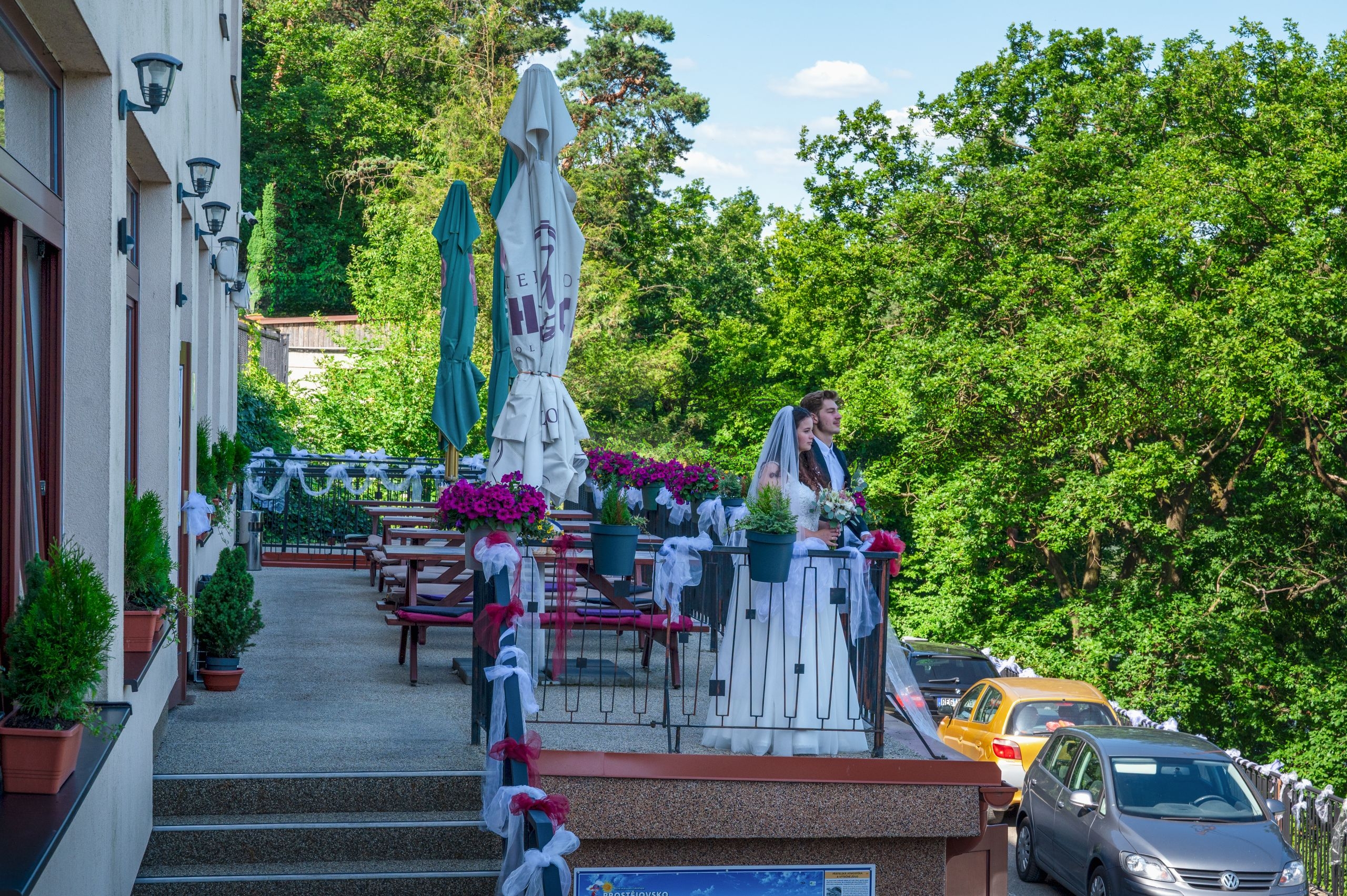 - Svatební obřady probíhají buď v sále, nebo na horní terase hotelu