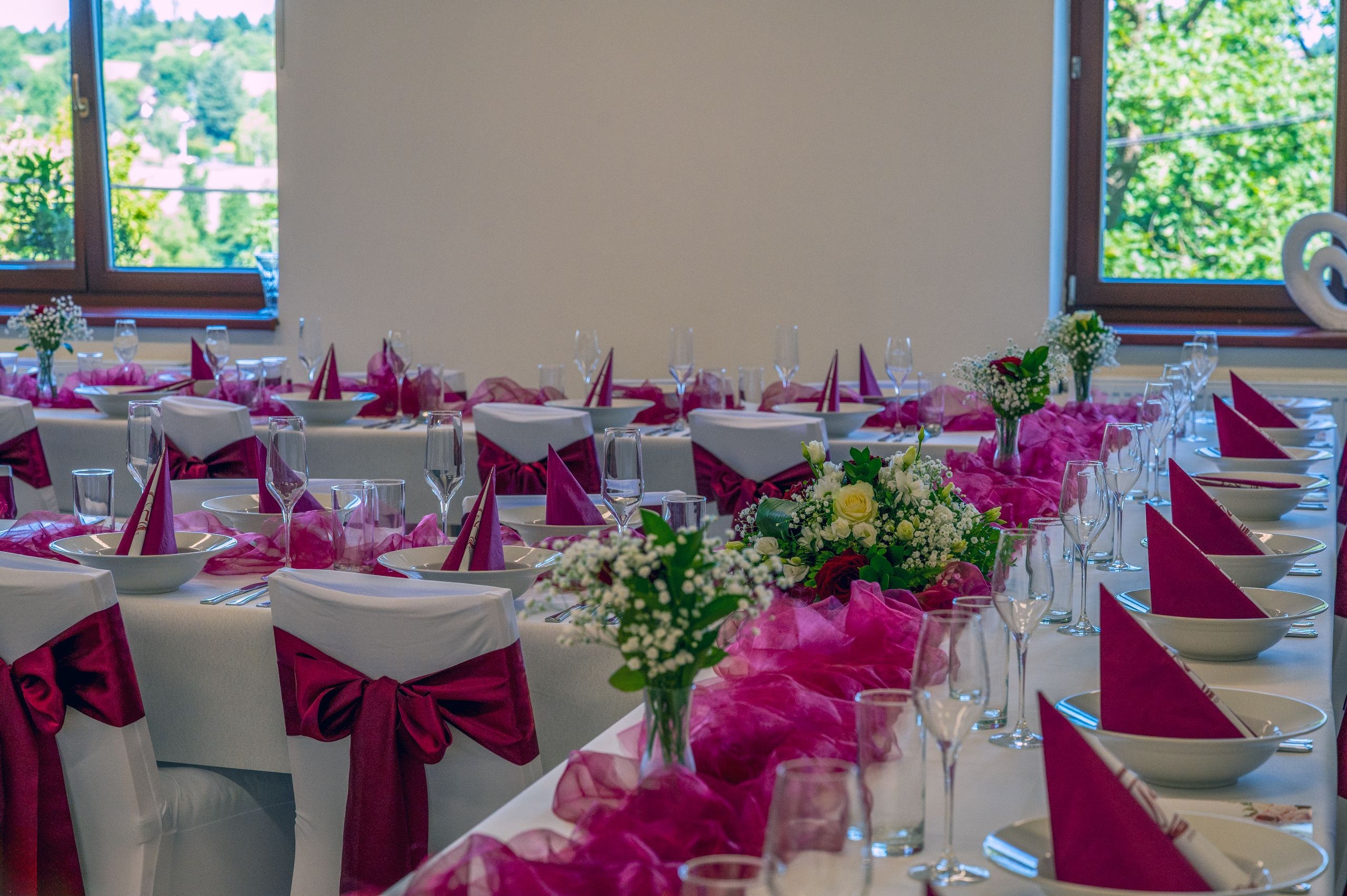 - Samozřejmostí jsou svatební potahy na židle se saténovými mašlemi