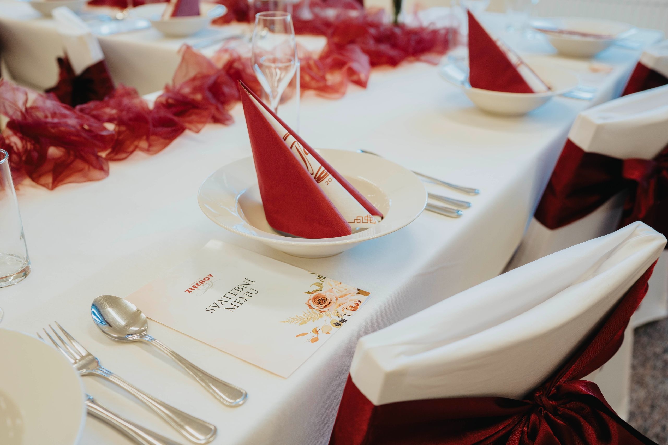 - V případě zájmu nabízíme jmenovky na stůl, slavnostní svatební nápojový a jídelní lístek umístěný na svatební tabuli